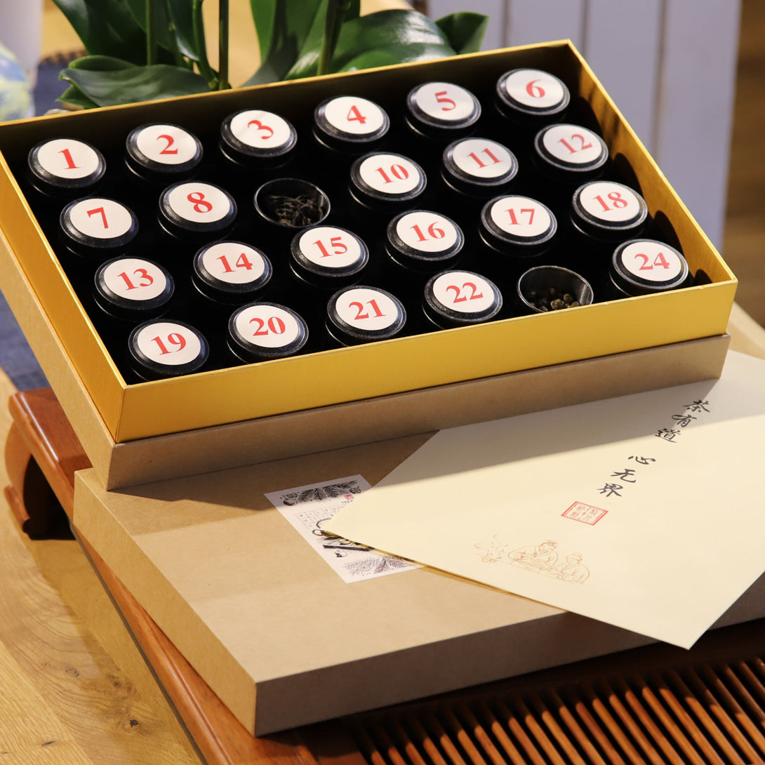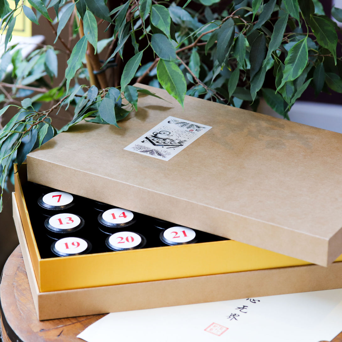 Look forward to a fine selection of 24 different teas that will take you on a journey through the world of tea. FinePu Erh(Sheng and Shu Pu Erh), aromaticoolong teasfrom Taiwan and China, delicatewhite tea(pressed and loose), refreshingGreen teafrom China and strongBlack teafrom the best growing areas in China. Each tea has its own story and unique taste.