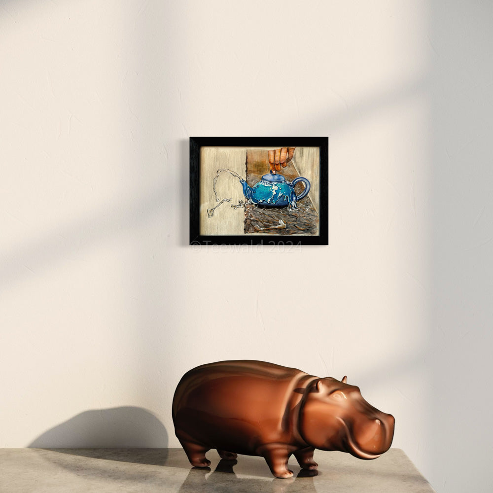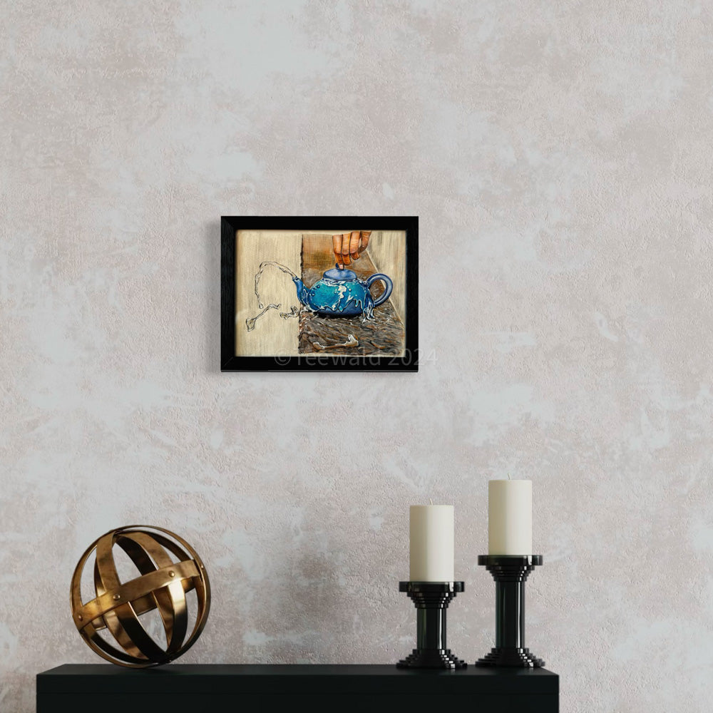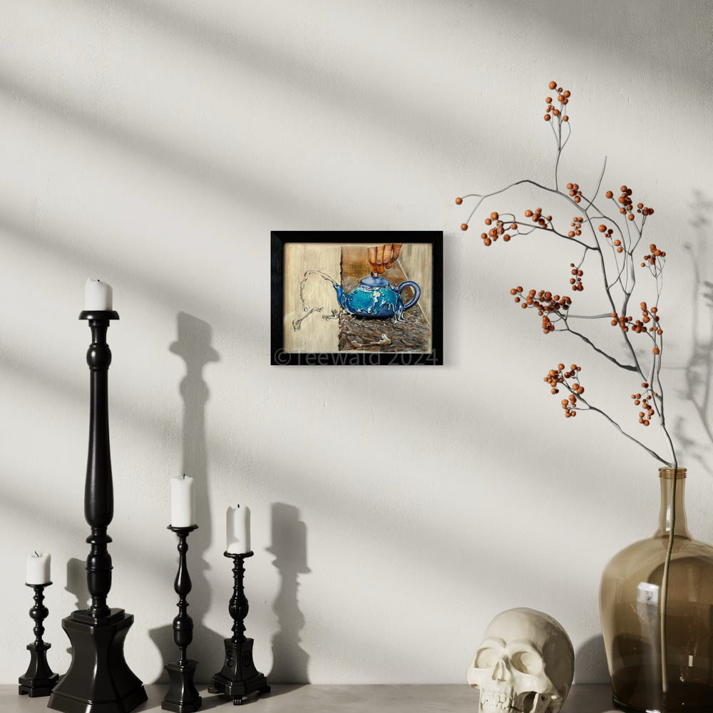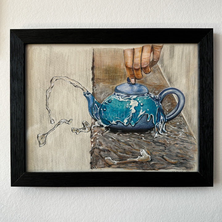 Tea Splash, Buntstiftzeichnung mit Rahmen, 18x24cm