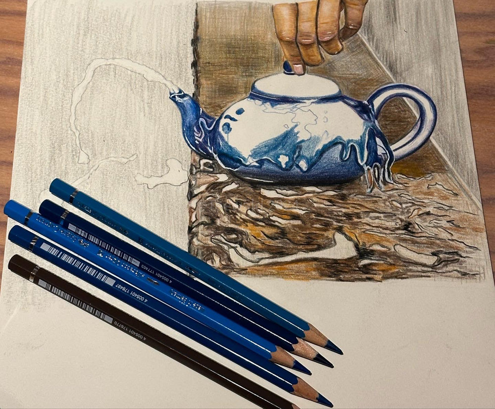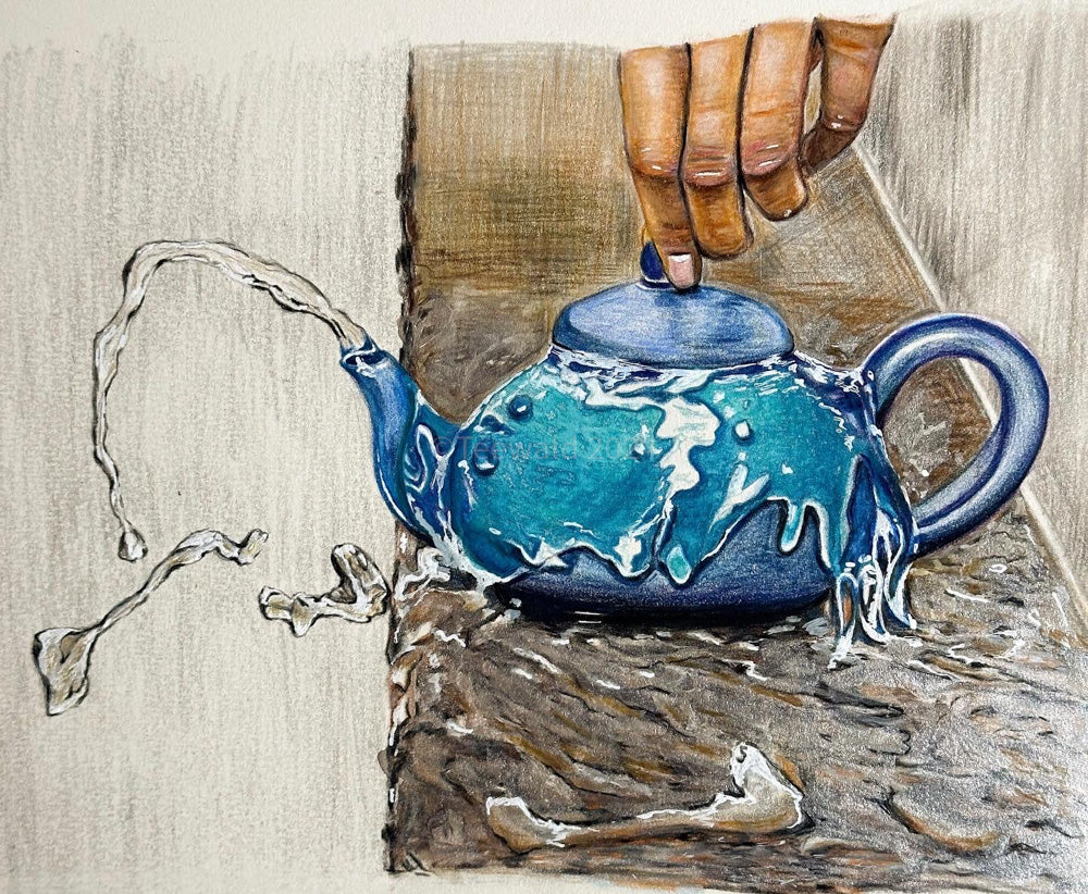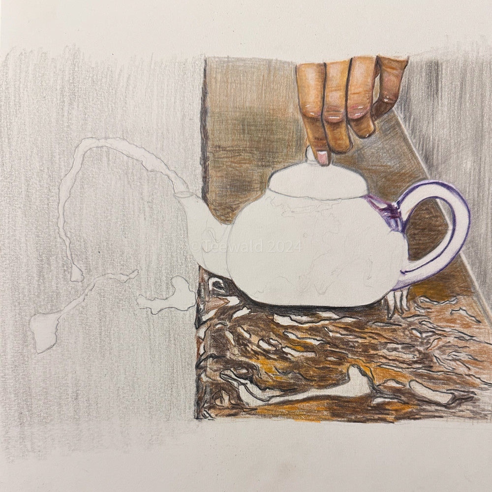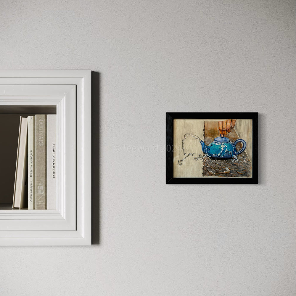 Tea Splash, Buntstiftzeichnung mit Rahmen, 18x24cm