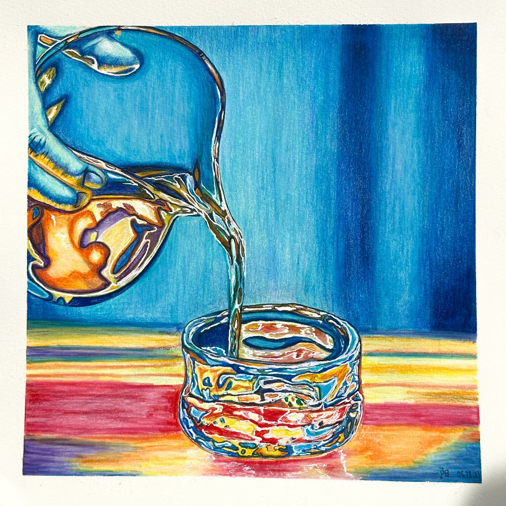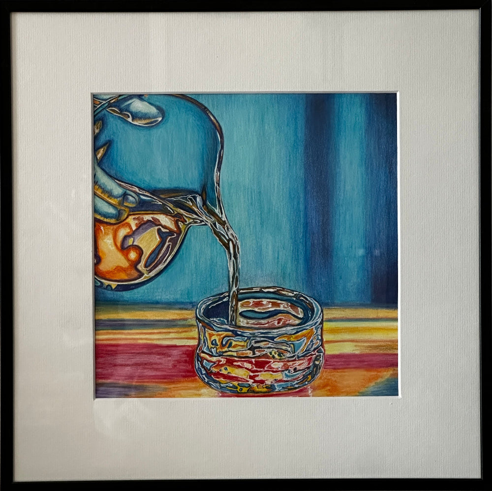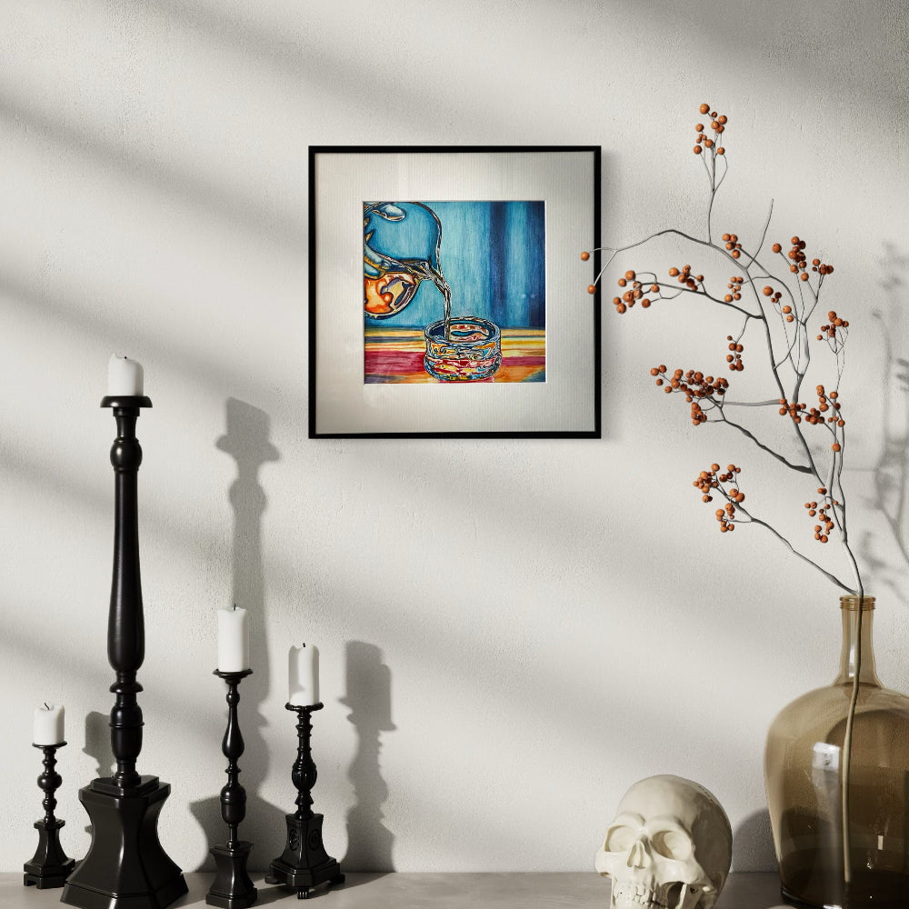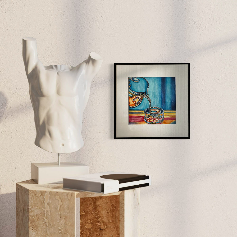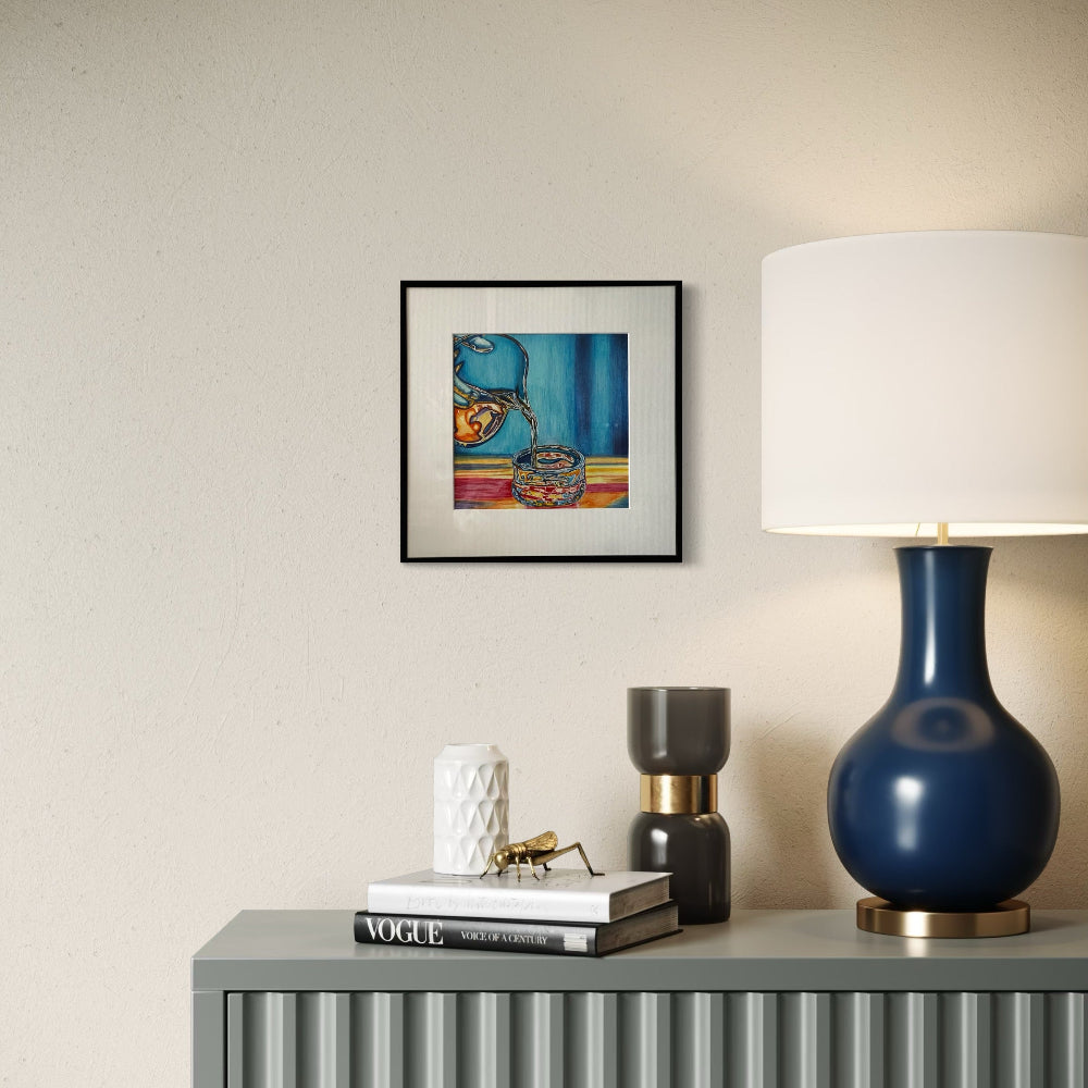 The Pouring Moment, Buntstiftzeichnung mit Rahmen, 30x30cm